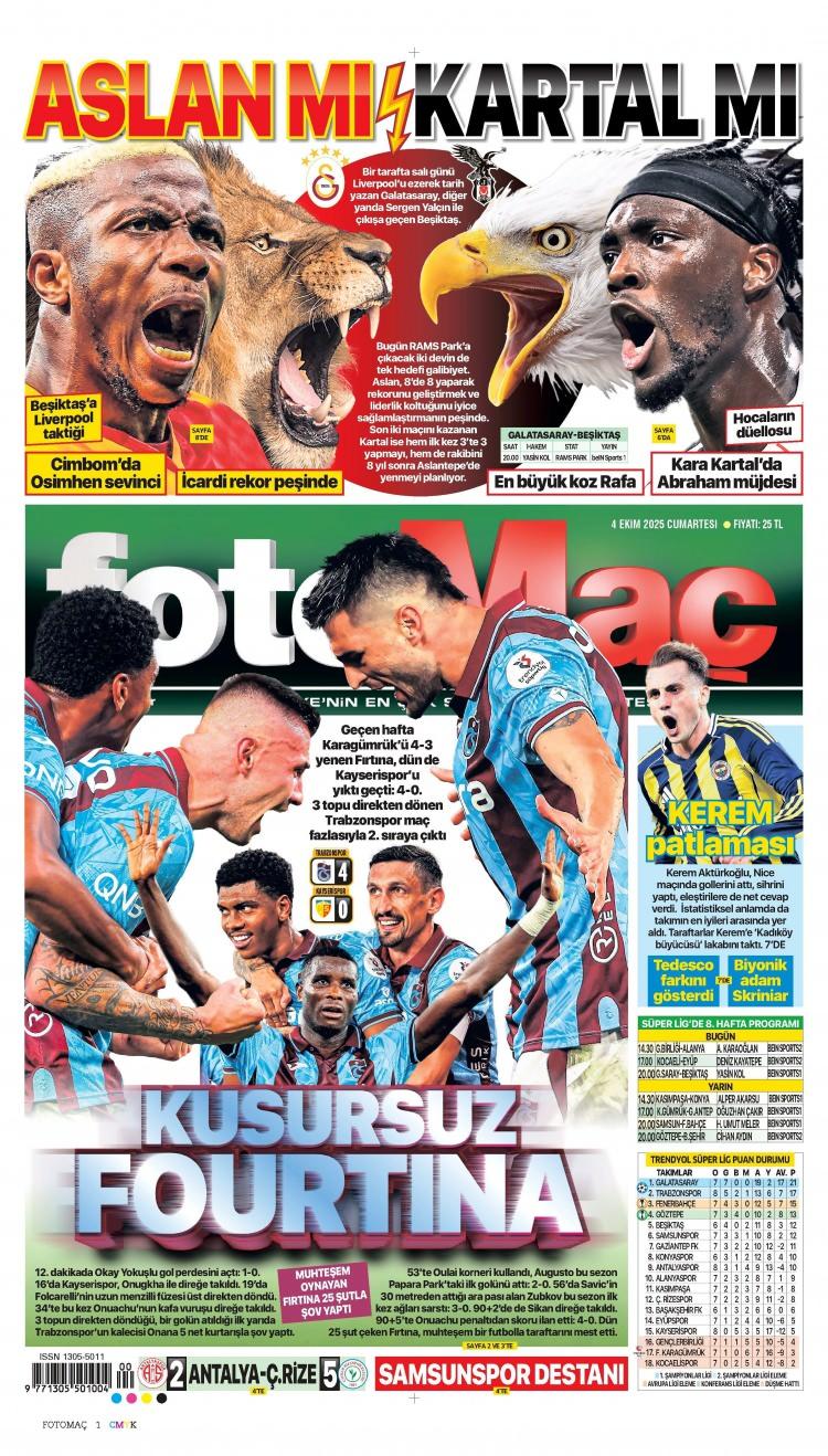 4 Ekim Cumartesi 2025 Gazete Manşetleri