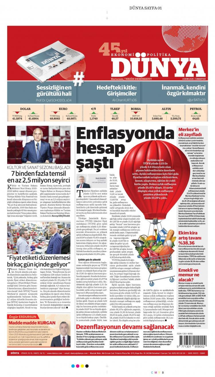 4 Ekim Cumartesi 2025 Gazete Manşetleri