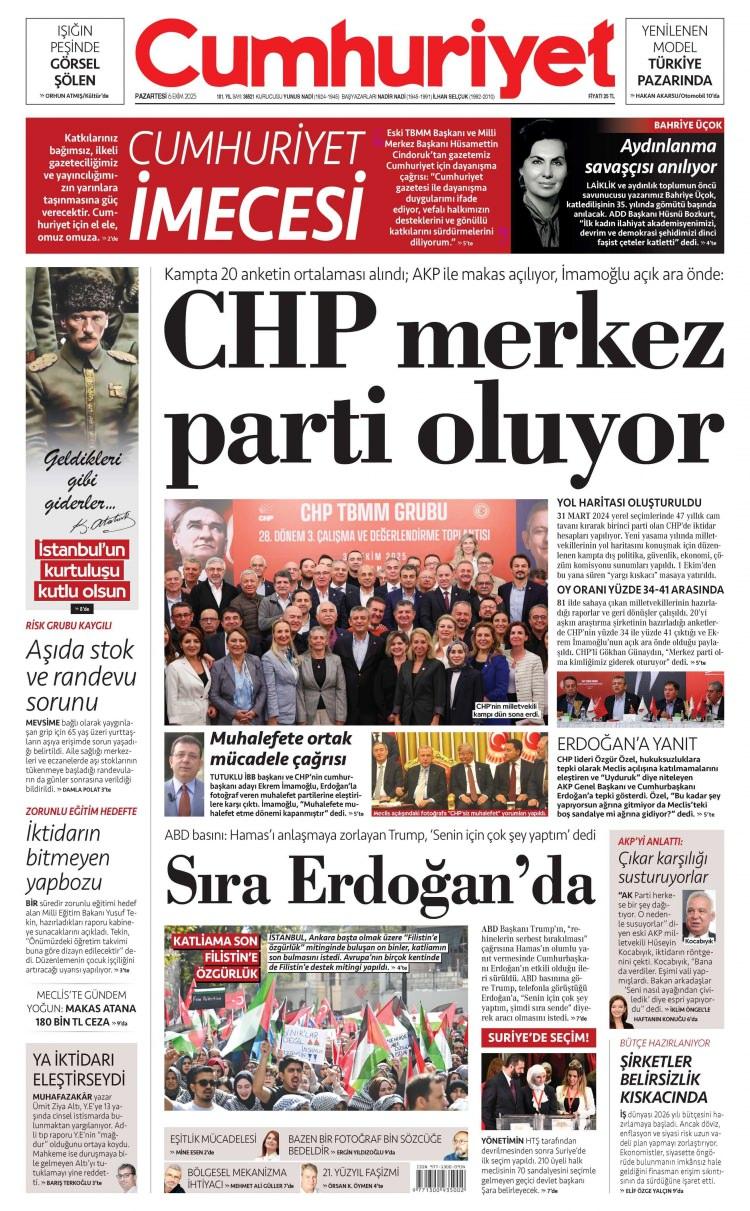 6 Ekim Pazartesi 2025 Gazete Manşetleri