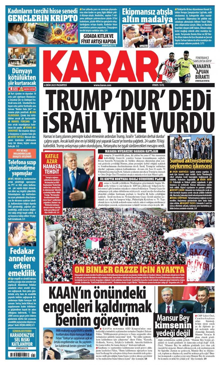6 Ekim Pazartesi 2025 Gazete Manşetleri