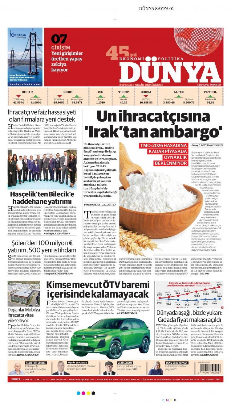 6 Ekim Pazartesi 2025 Gazete Manşetleri