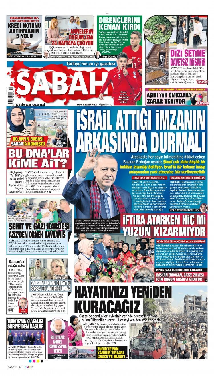 13 Ekim Pazartesi 2025 Gazete Manşetleri