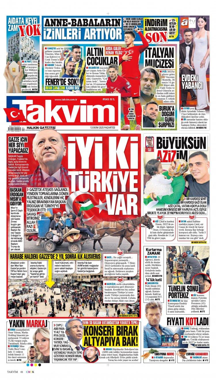 13 Ekim Pazartesi 2025 Gazete Manşetleri