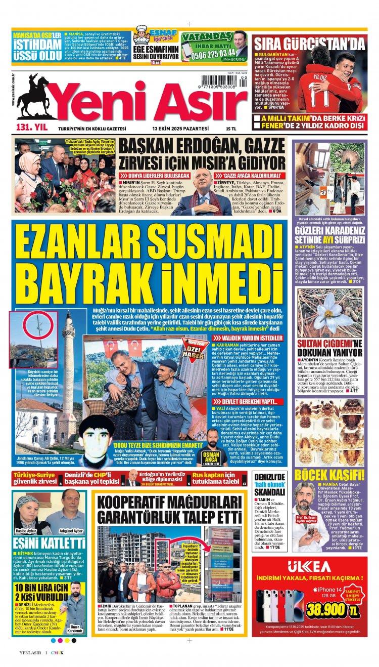 13 Ekim Pazartesi 2025 Gazete Manşetleri