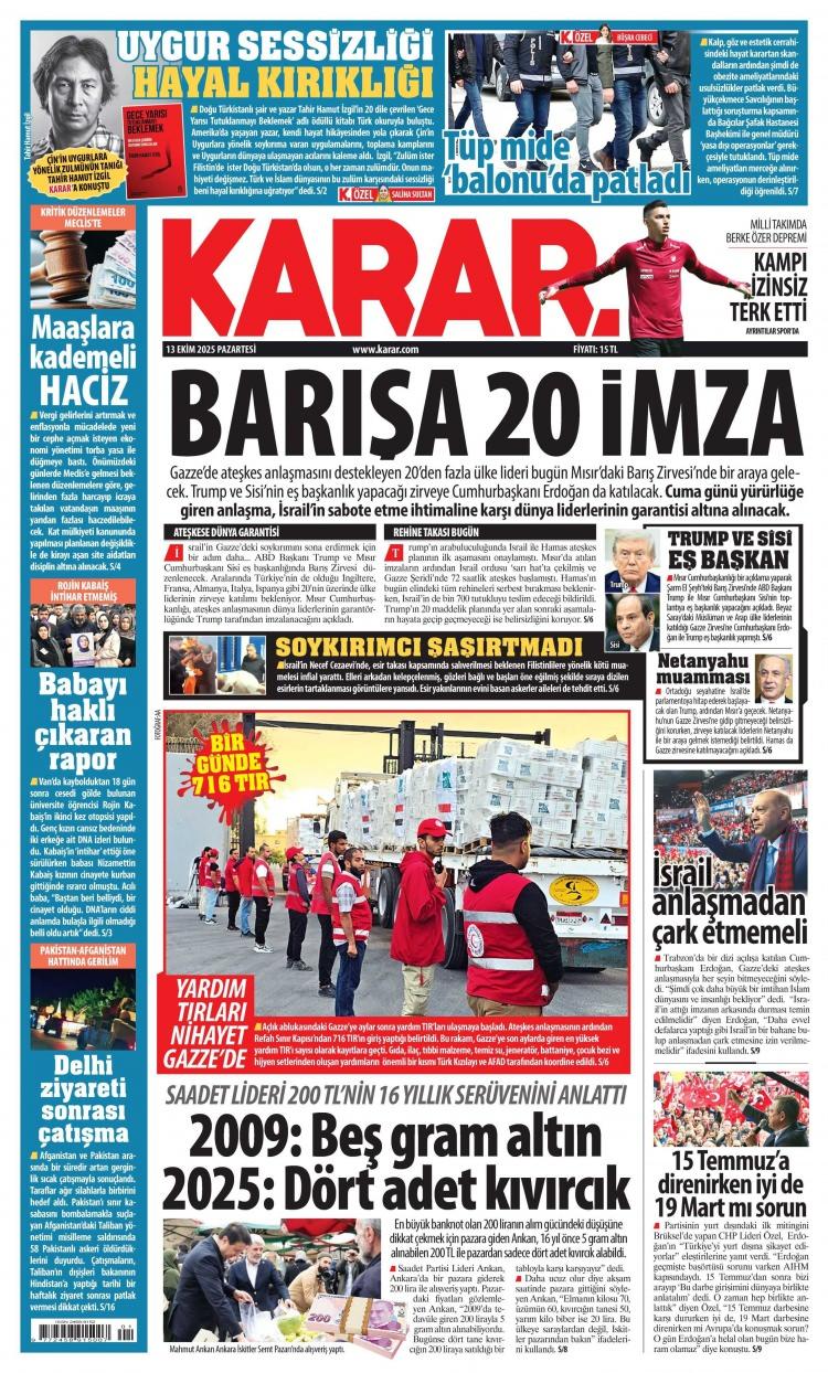 13 Ekim Pazartesi 2025 Gazete Manşetleri