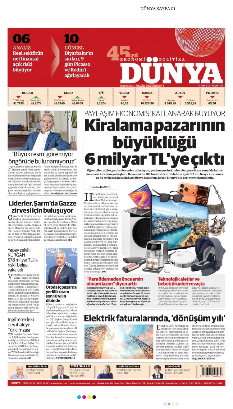 13 Ekim Pazartesi 2025 Gazete Manşetleri
