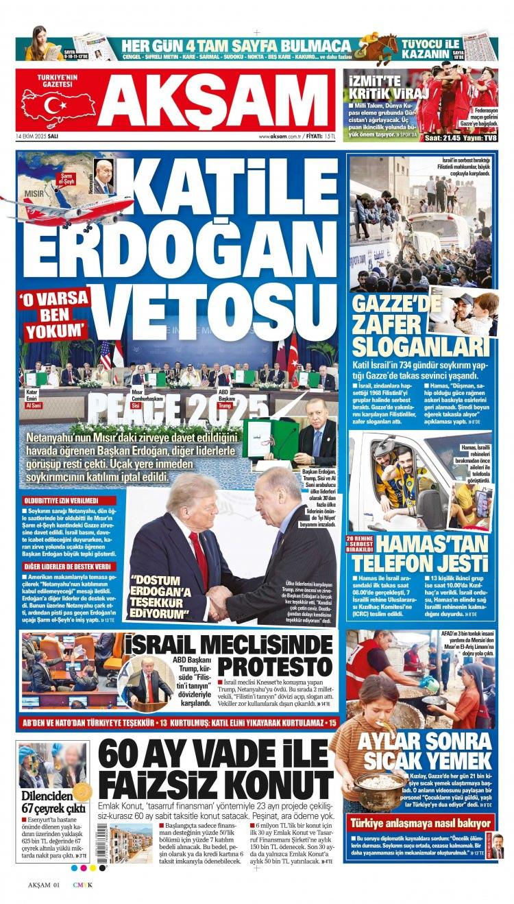 14 Ekim Salı 2025 Gazete Manşetleri