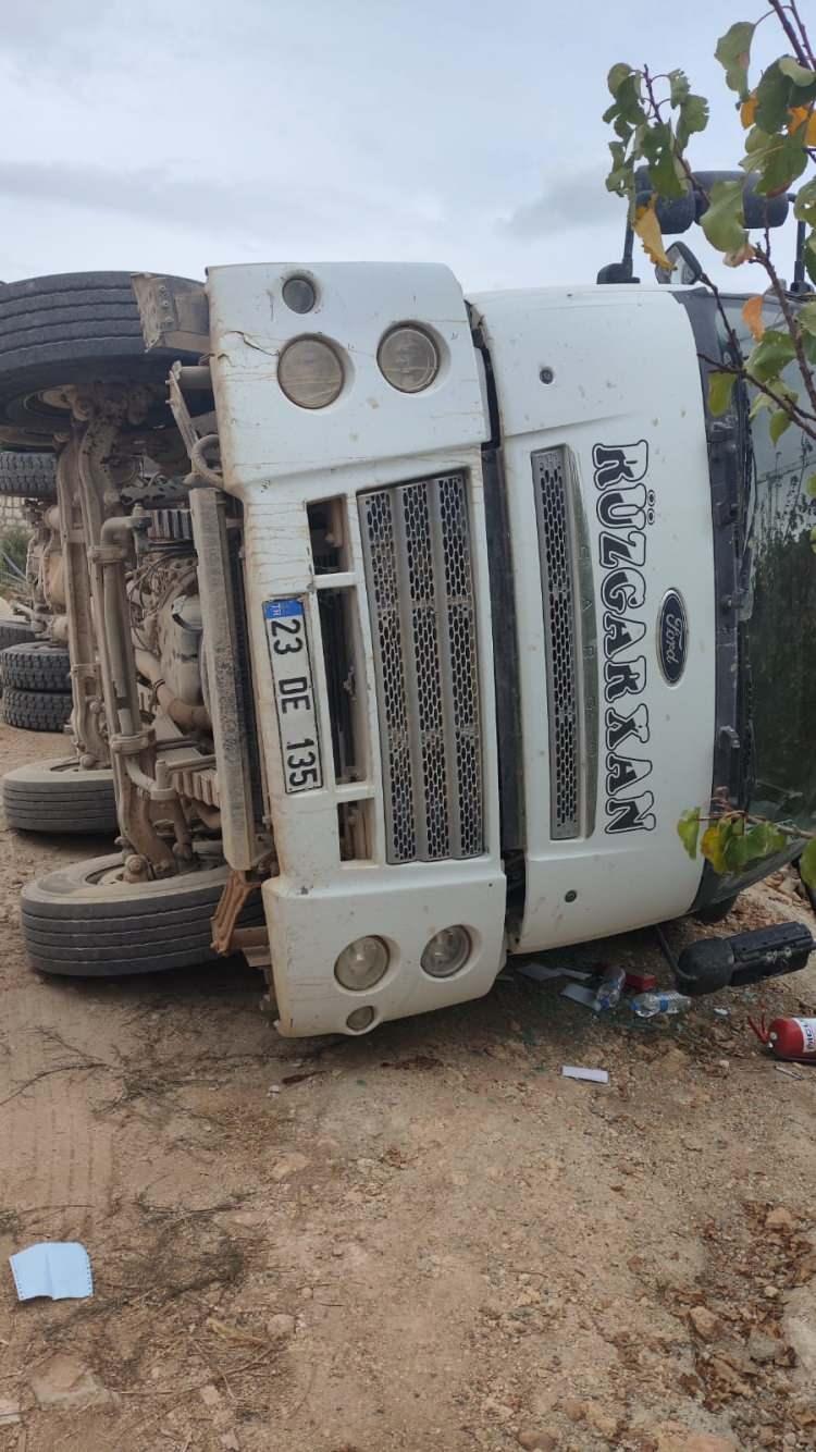 Mardin'de kum yüklü kamyon minibüsün üstüne devrildi