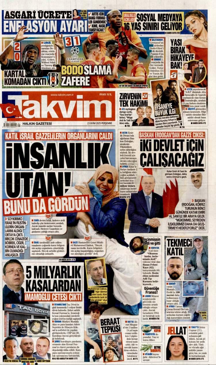 23 Ekim Perşembe 2025 Gazete Manşetleri