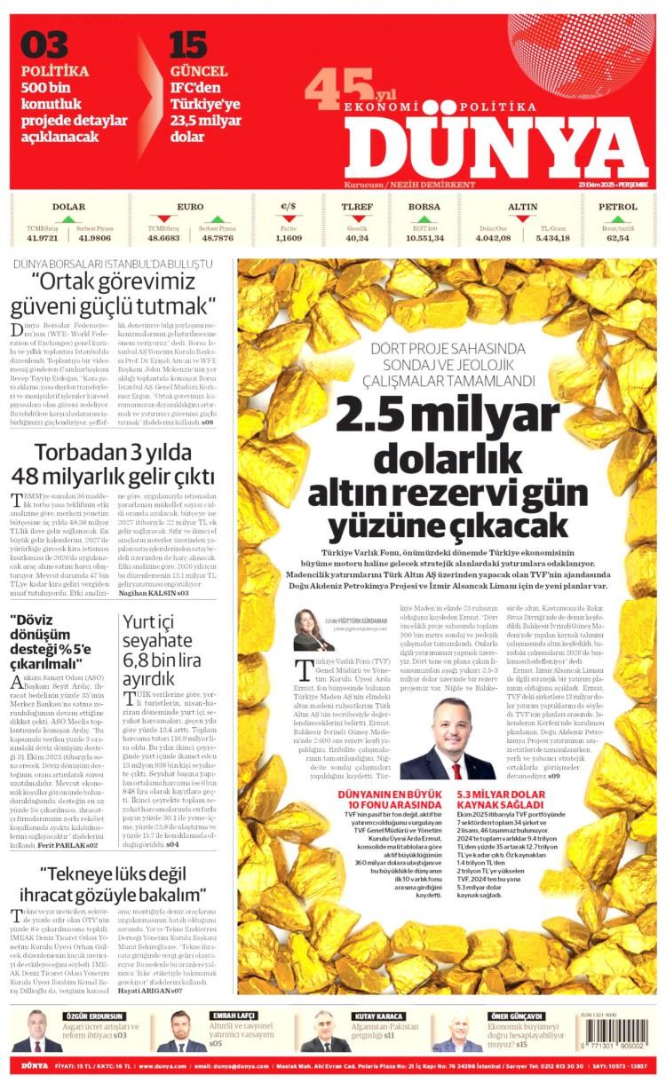 23 Ekim Perşembe 2025 Gazete Manşetleri