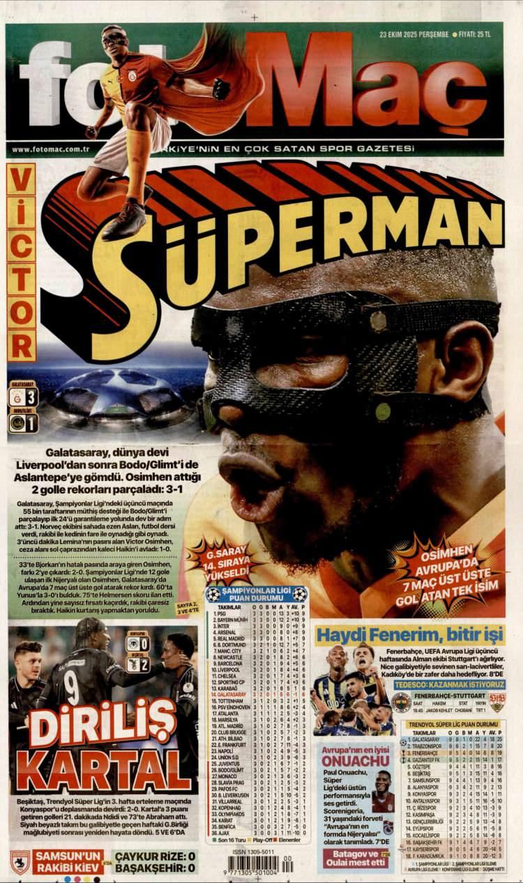 23 Ekim Perşembe 2025 Gazete Manşetleri