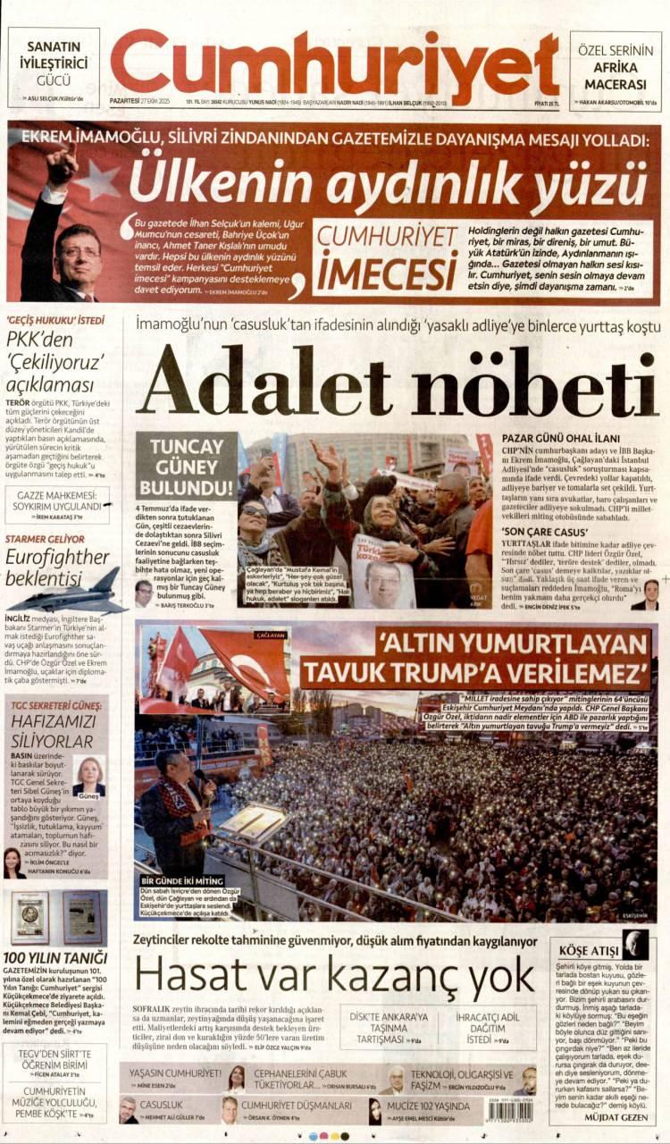 27 Ekim Pazartesi 2025 Gazete Manşetleri