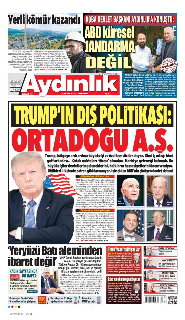 1 Kasım Cumartesi 2025 Gazete Manşetleri
