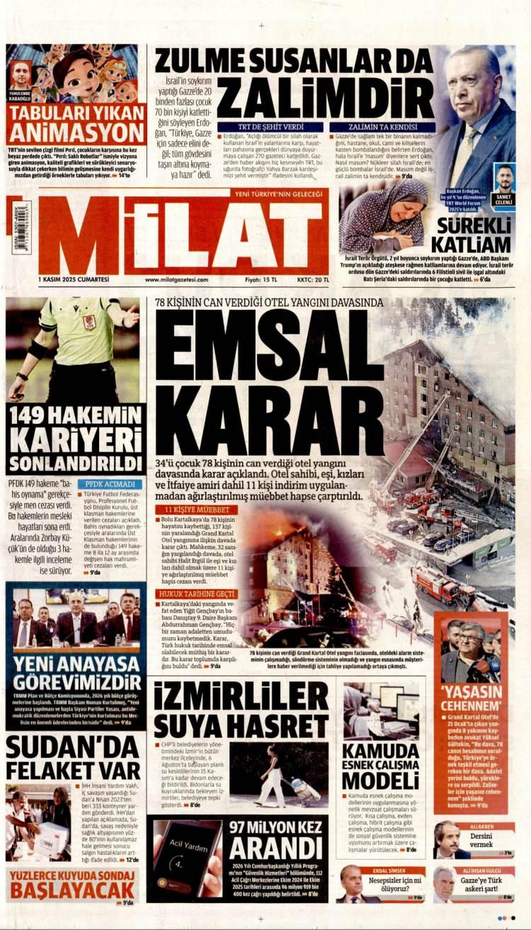 1 Kasım Cumartesi 2025 Gazete Manşetleri