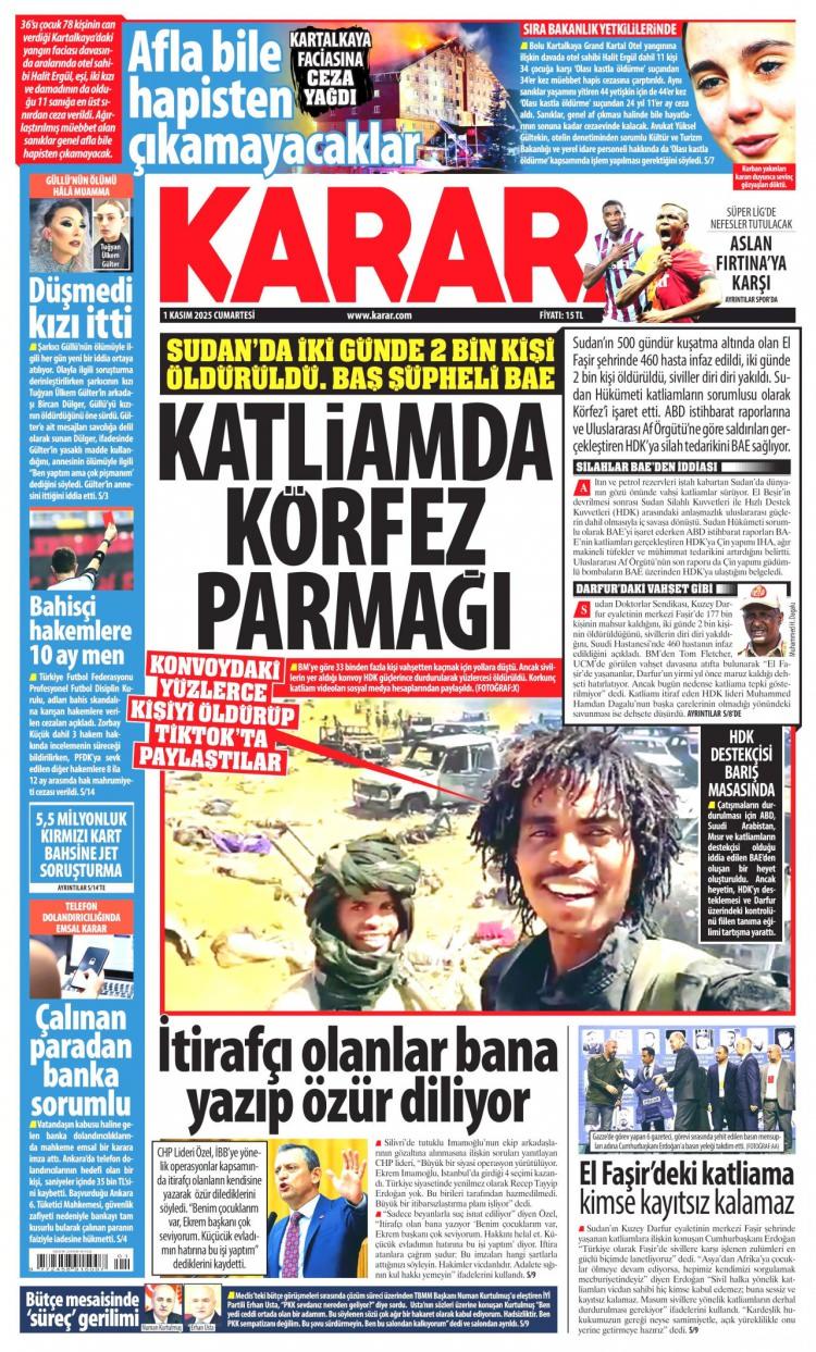 1 Kasım Cumartesi 2025 Gazete Manşetleri