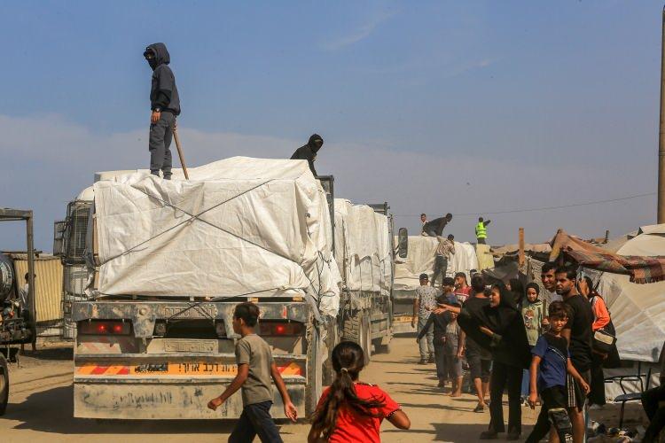 Gazze’ye insani yardım yüklü tırların girişi devam ediyor