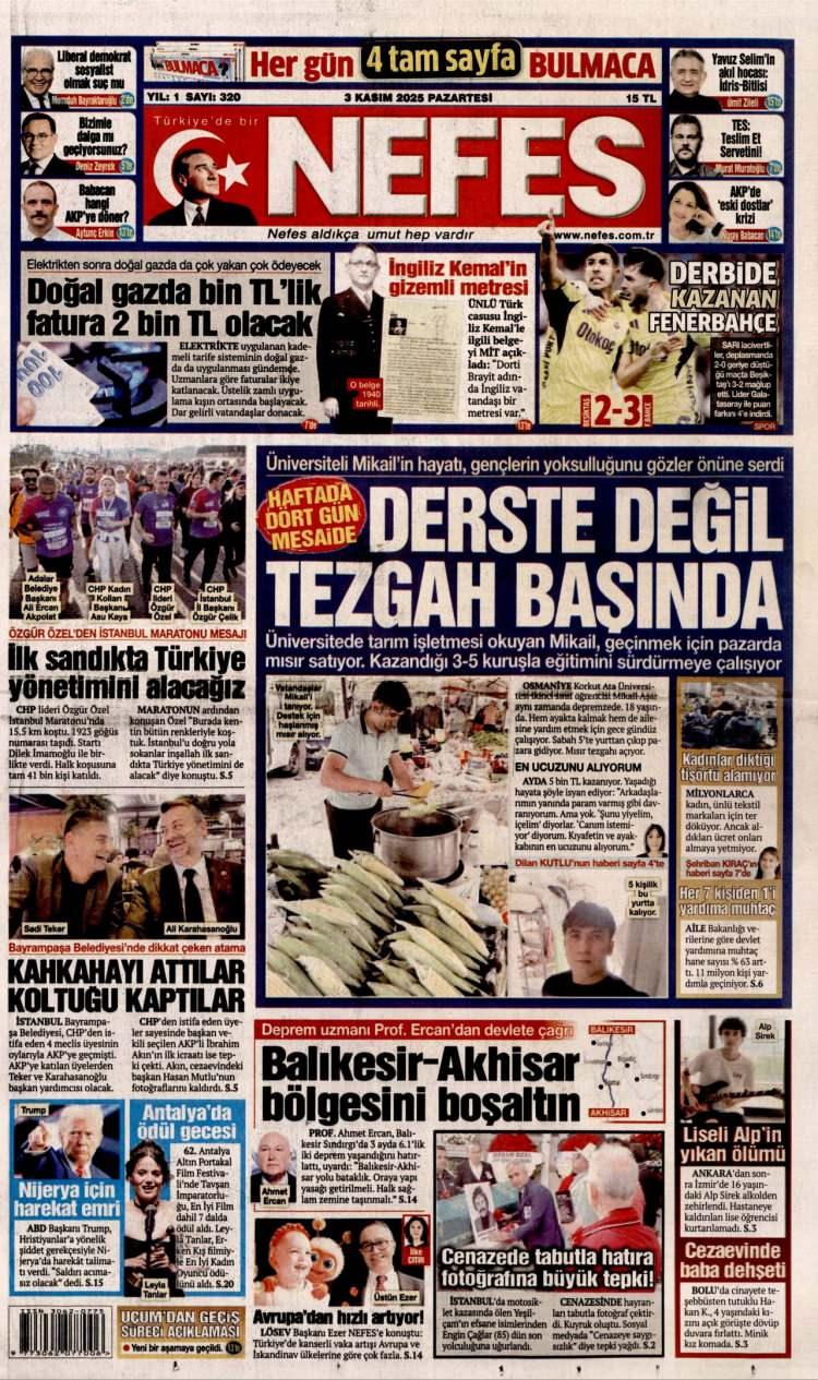 3 Kasım Pazartesi 2025 Gazete Manşetleri