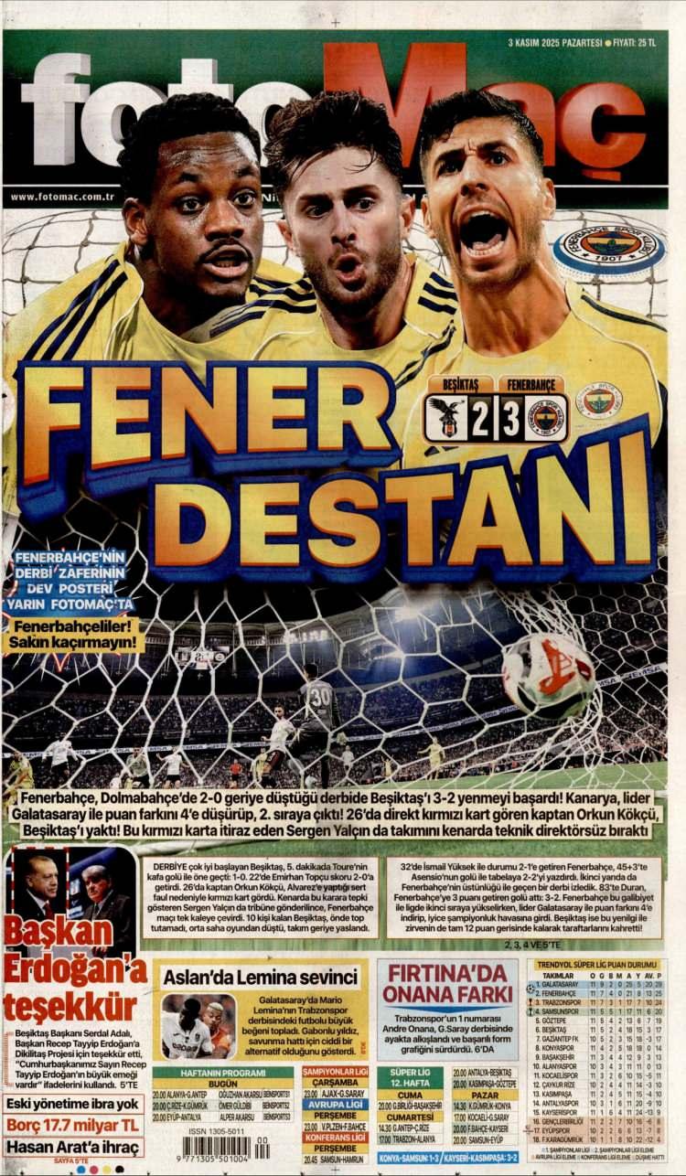 3 Kasım Pazartesi 2025 Gazete Manşetleri