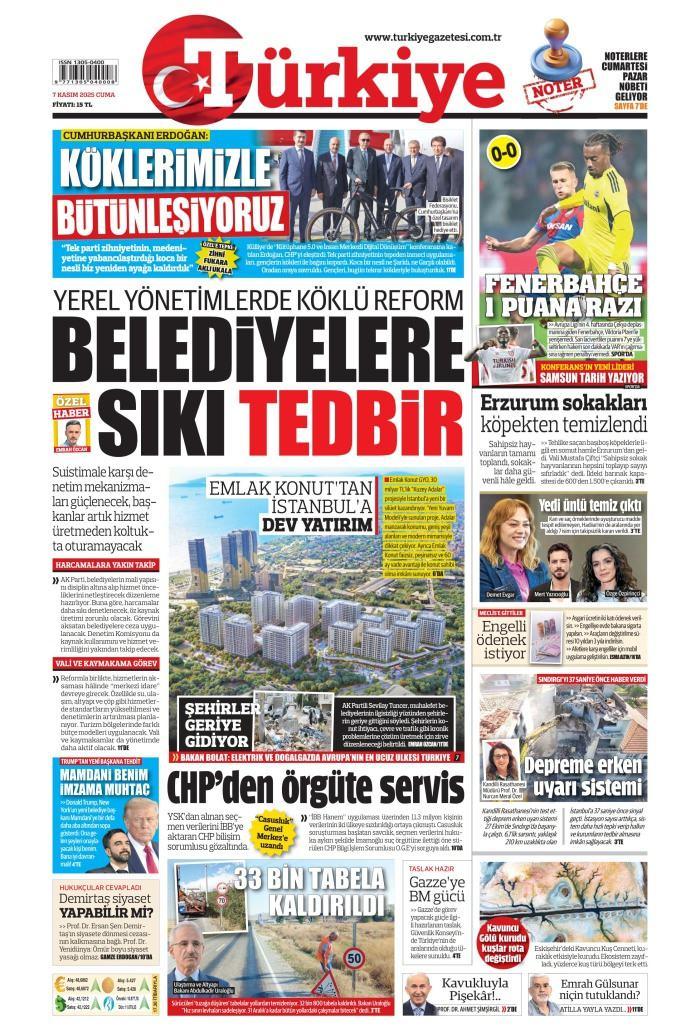 Belediyelere sıkı denetim: Yerel yönetimlere köklü reform - 7 Kasım 2025 gazete manşetleri