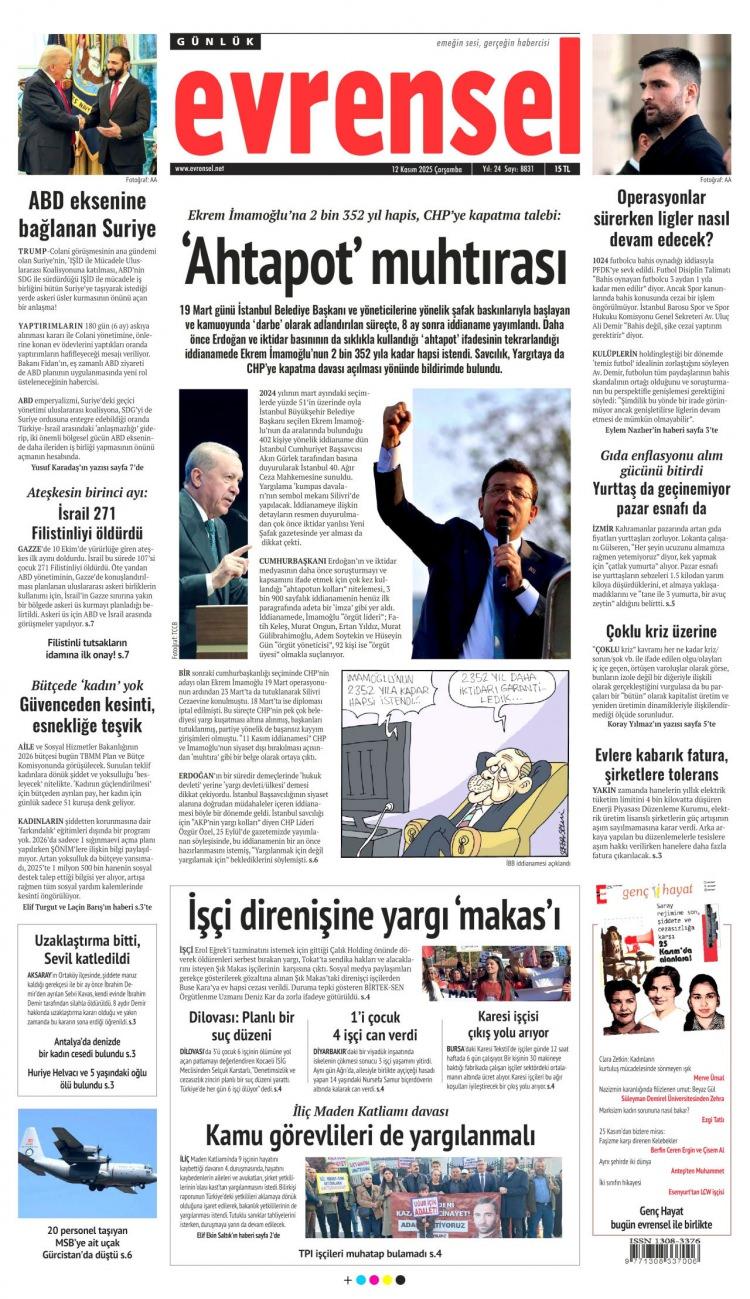 12 Kasım Çarşamba 2025 Gazete Manşetleri