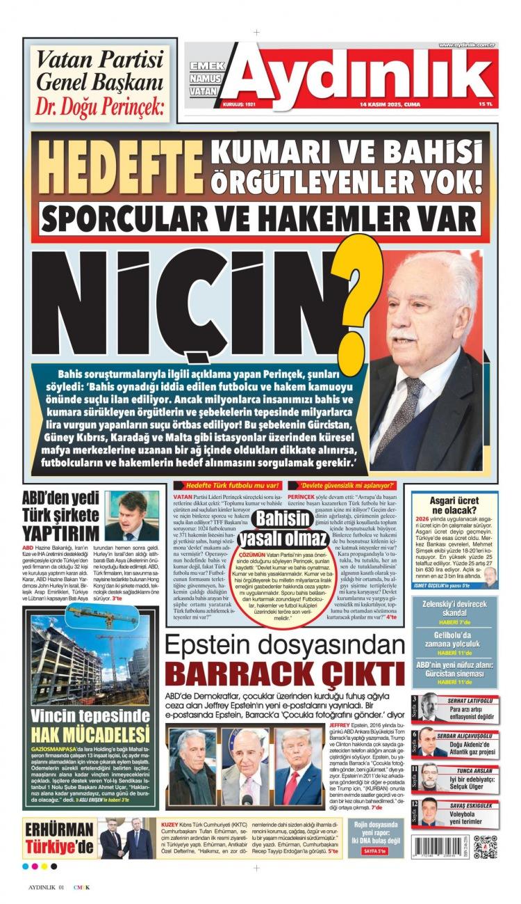 14 Kasım Cuma 2025 Gazete Manşetleri