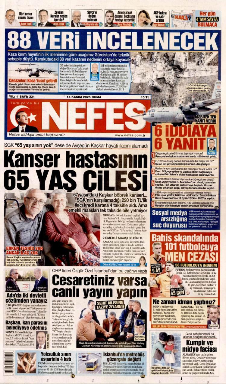 14 Kasım Cuma 2025 Gazete Manşetleri