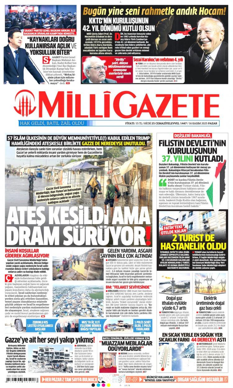 16 Kasım Pazar 2025 Gazete Manşetleri