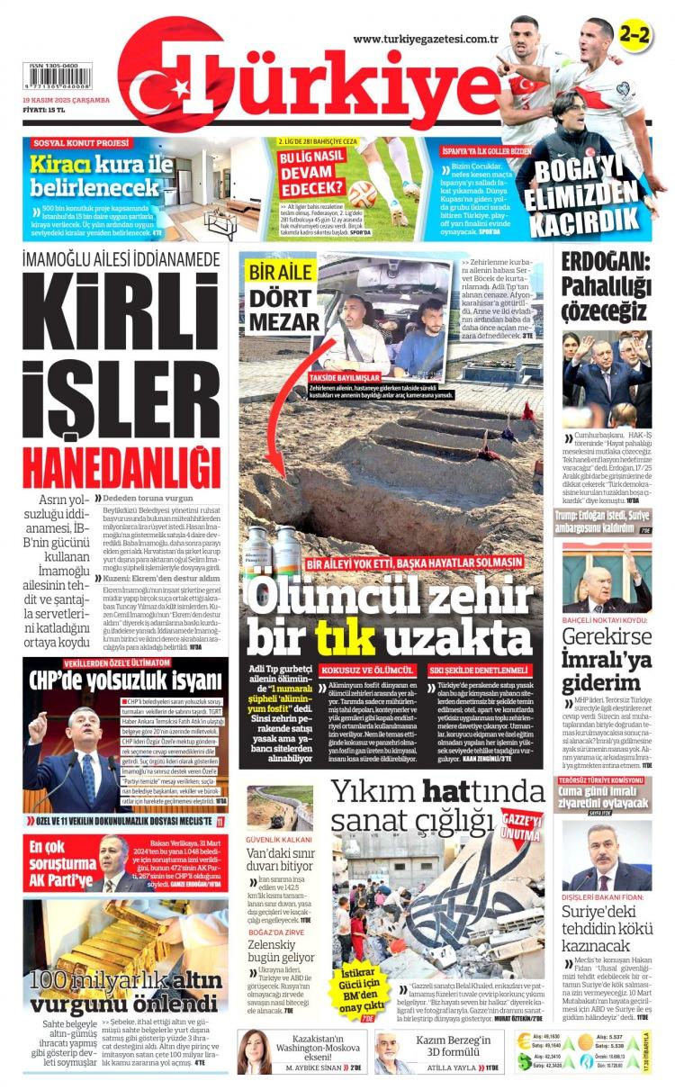 19 Kasım Çarşamba 2025 Gazete Manşetleri