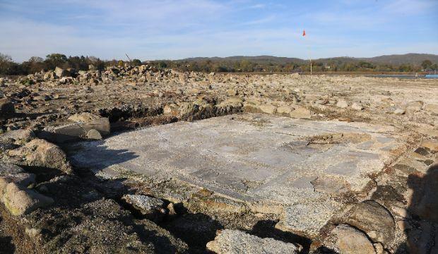 Sapanca Gölü'nde sular çekilince tarihi kesme taşlar ve mermerler görüldü