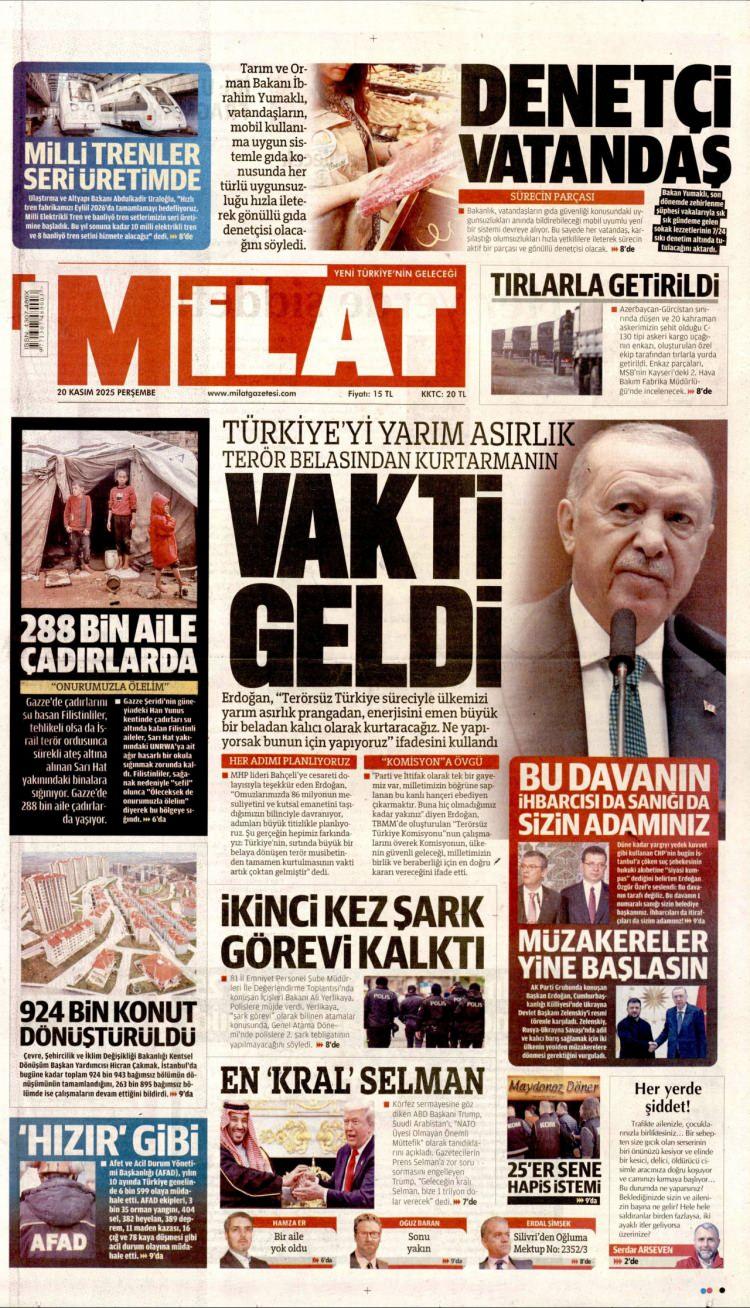 20 Kasım Perşembe 2025 Gazete Manşetleri