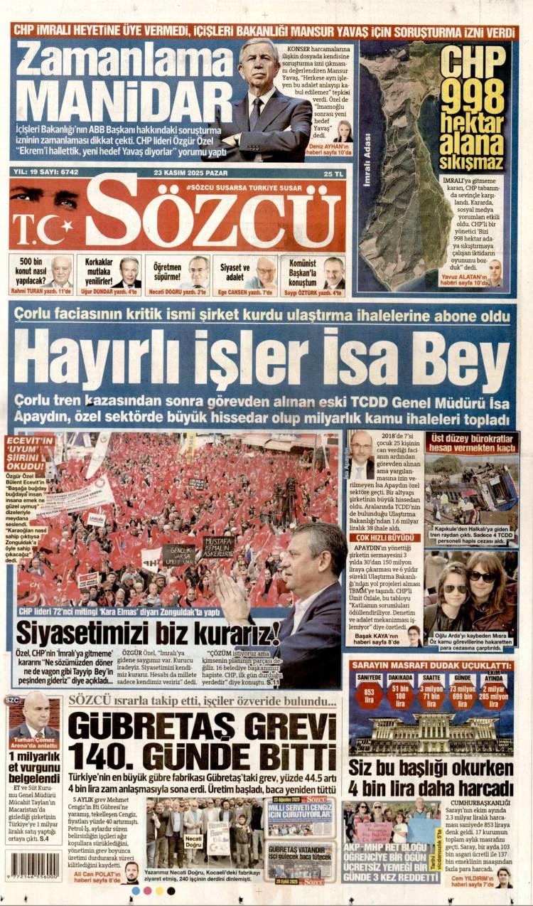23 Kasım Pazar 2025 Gazete Manşetleri