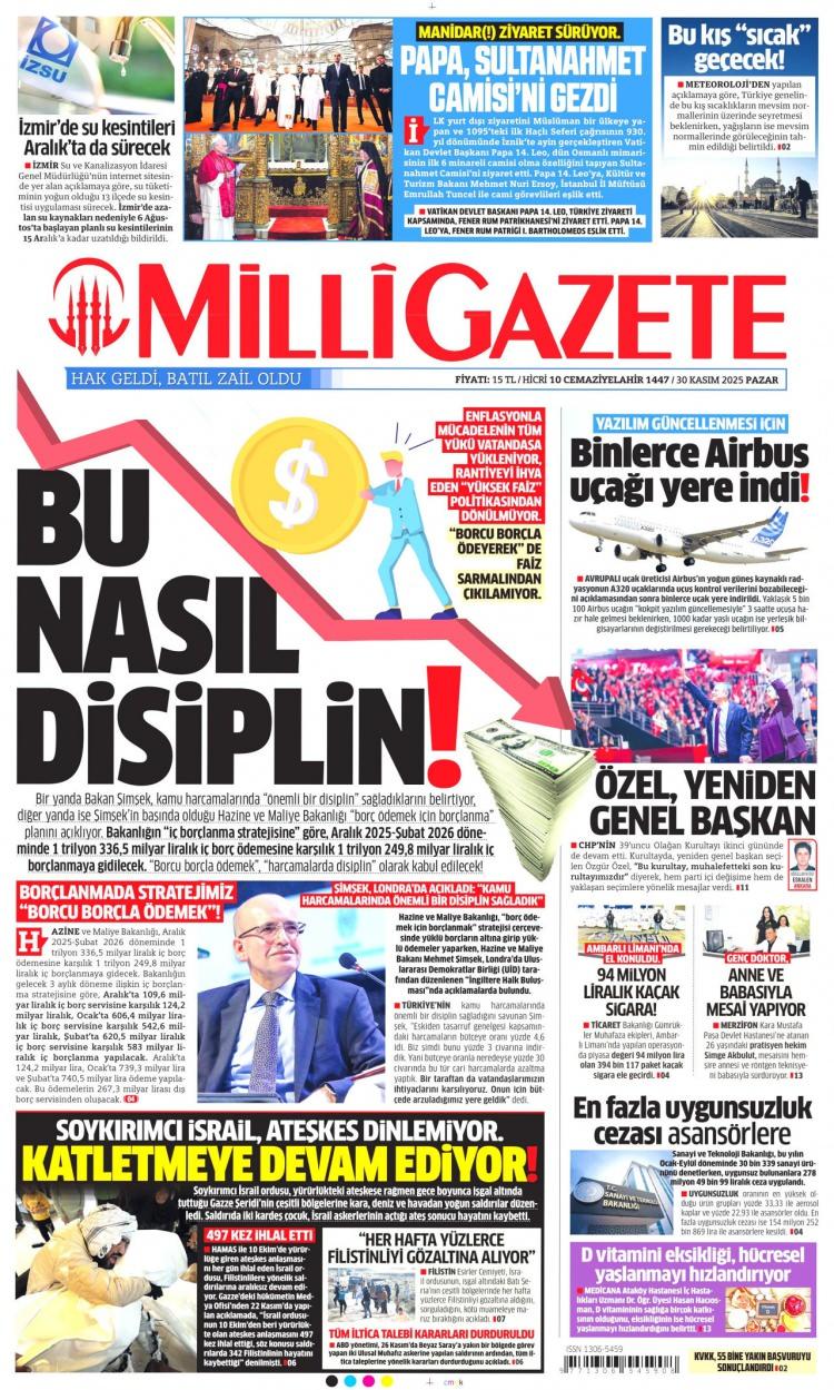 30 Kasım Pazar 2025 Gazete Manşetleri