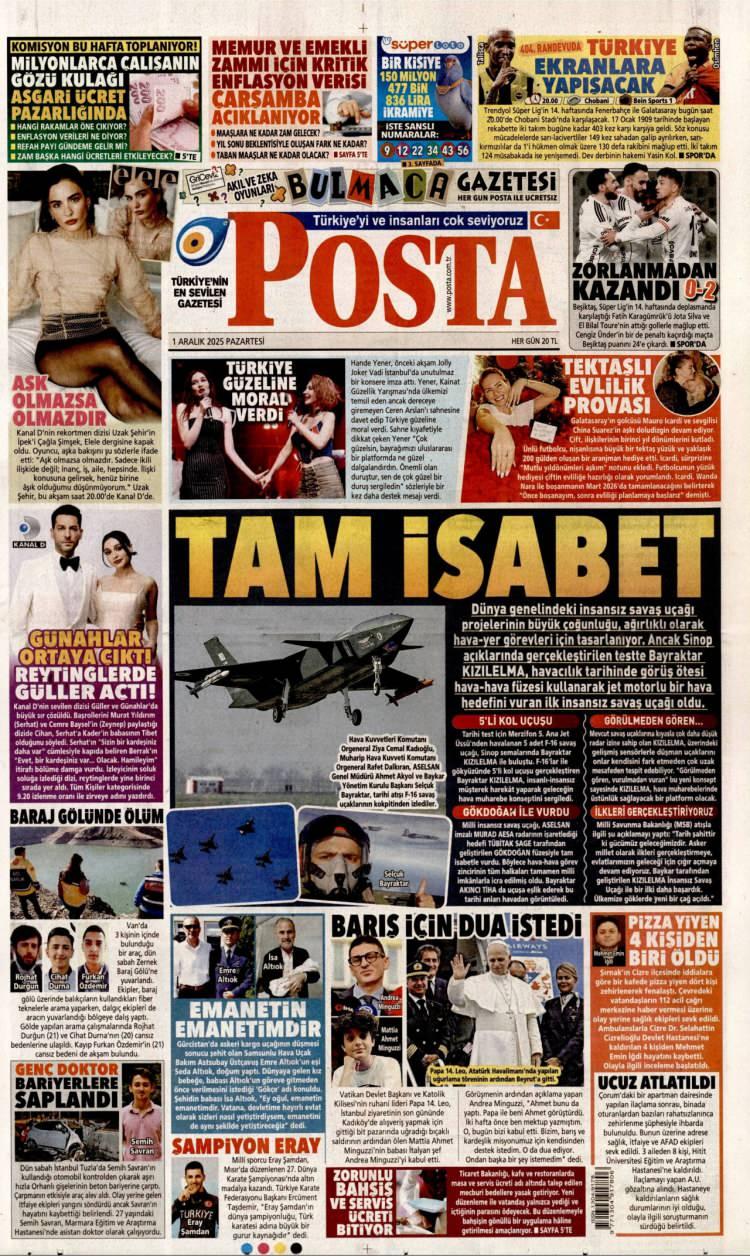 1 Aralık Pazartesi 2025 Gazete Manşetleri