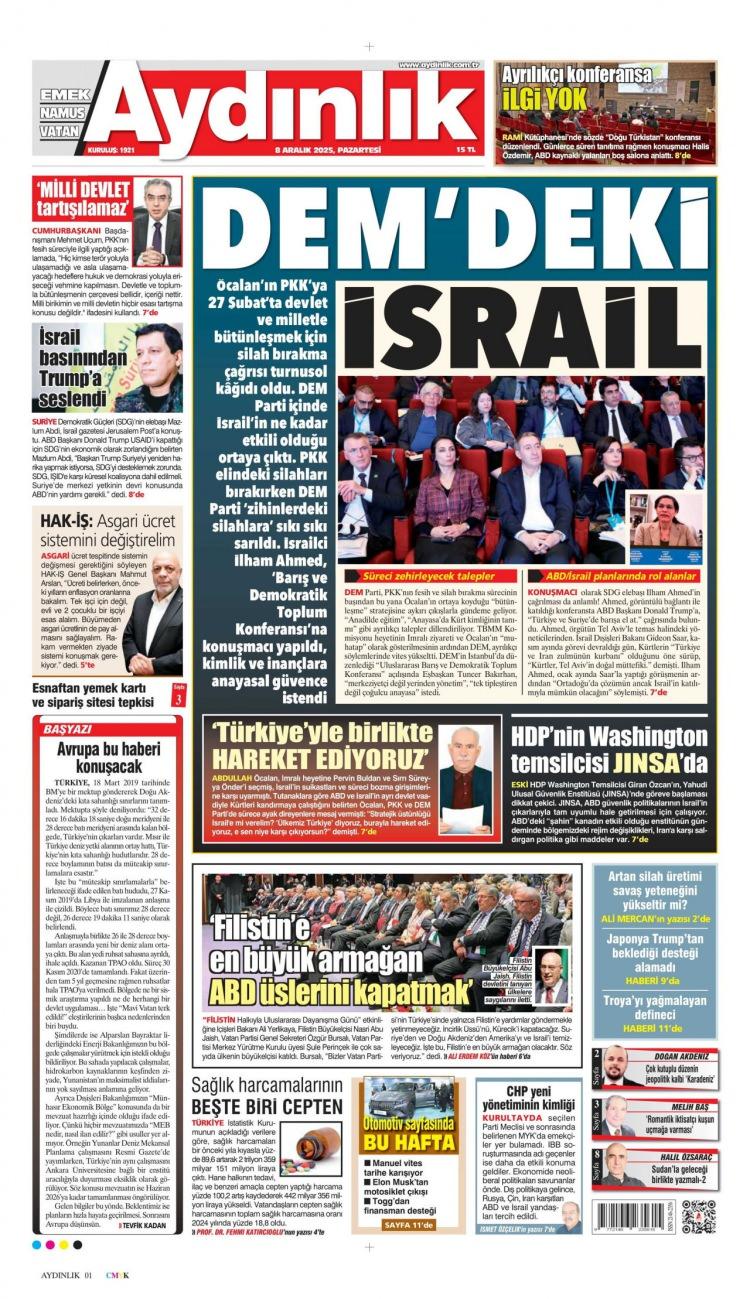 8 Aralık Pazartesi 2025 Gazete Manşetleri