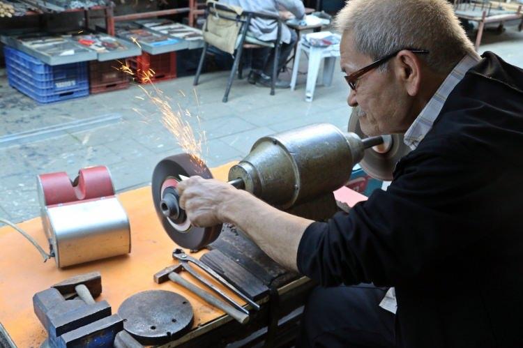 Edinilen bilgiye göre, 15 yaşında babasının yanında mesleğe adım atan Mehmet Şakar, 50 yıldır sabahın erken saatlerinde açtığı iş yerinde bıçak bileme ve satış işi yapıyor.