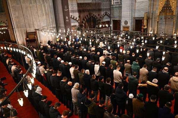 Eyüp Sultan Camisi'nde düzenlenen kandil programı yağışlı havaya rağmen vatandaşlardan yoğun ilgi gördü.