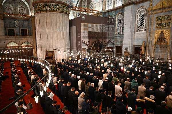 Akşam namazı öncesinde camiye gelen vatandaşlar önce Hazreti Peygamber'in Mihmandarı Ebu Eyyub el-Ensari'nin türbesini ziyaret etti.