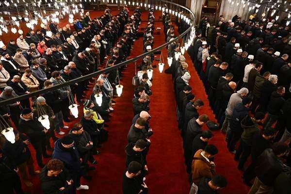 Camide, akşam namazını eda eden vatandaşlar, hep bir ağızdan ilahiler okudu.