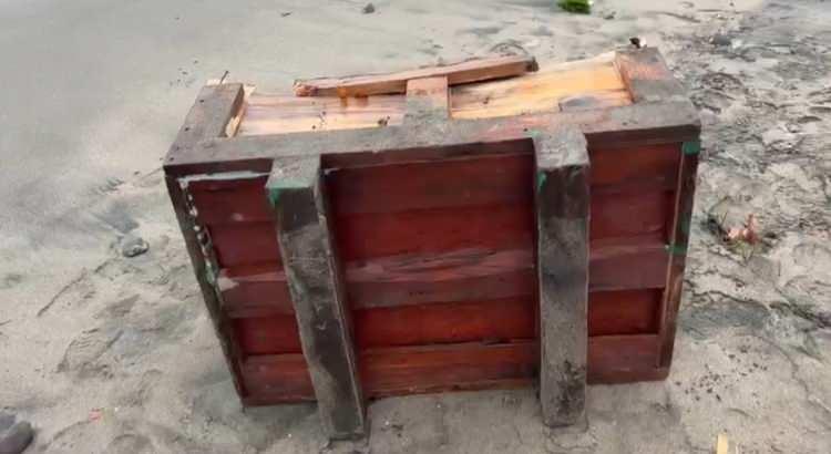 İhbar üzerine bölgeye sevk edilen polis ekipleri, sahil şeridinde güvenlik önlemi alarak sandık üzerinde inceleme yaptı.