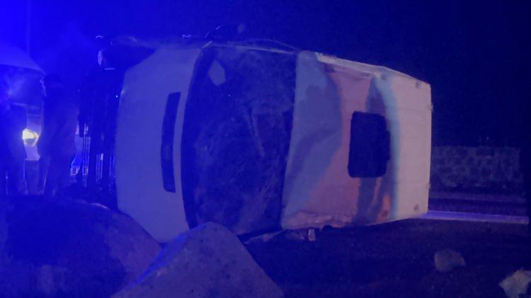 Öte yandan minibüsün, sürücünün yola çıkan sahipsiz bir köpeğe çarpmamak için manevra yaptığı sırada devrildiği iddia edildi.