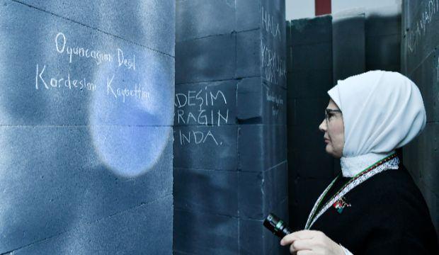Emine Erdoğan, "Yüzölçümü sadece 365 kilometrekare, yani aşağı yukarı Beykoz ilçesi kadar bir alan ama gelin görün ki bu avuç içi kadar yer, tarihin en kanlı, en vahşi, en sistematik soykırımıyla, hiçbir vicdanın kaldıramayacağı acıların merkezi oldu." diye konuştu.