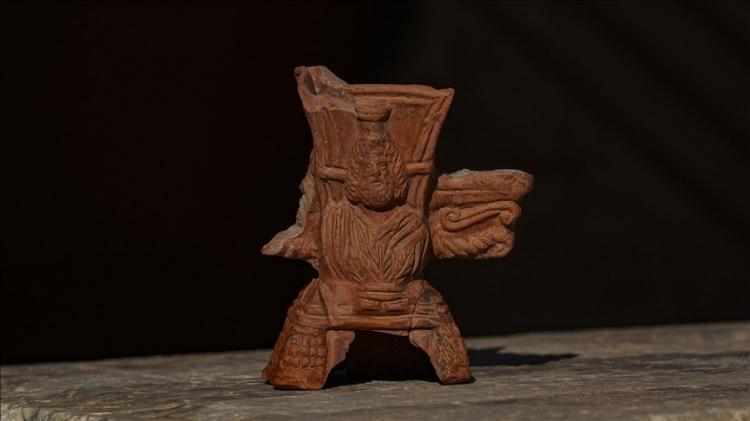 Efes (İzmir): Üzerinde Mısır tanrısı Serapis kabartması bulunan pişmiş toprak tütsü kabı bulundu.