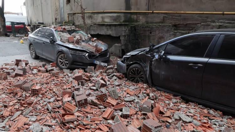 Duvar parçaları park halindeki araçların üzerine düşerken, olayda can kaybı ya da yaralanma yaşanmadı. İhbar üzerine polis ekipleri bölgeye geldi.
