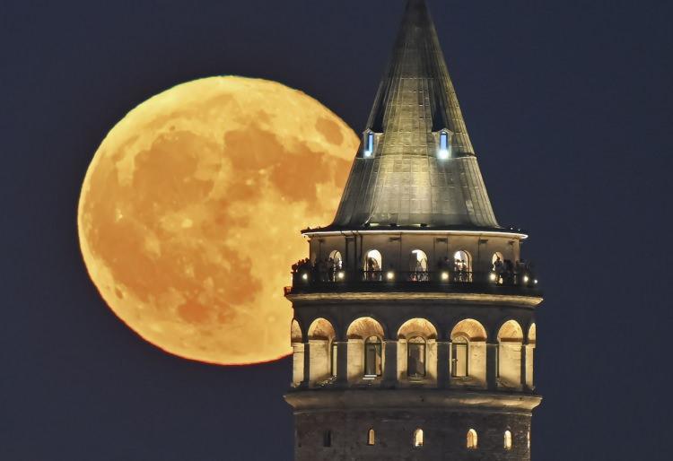İstanbul'da dolunay, Galata Kulesi ile birlikte görüntülendi.