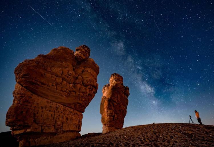 Konya'nın Cihanbeyli ilçesi Kuşça Mahallesi sınırları içerisinde yer alan Kuşça Peribacaları'nda gece saatlerinde gökyüzünde gerçekleşen meteor yağmuru, uzun pozlama tekniğiyle görüntülendi.
