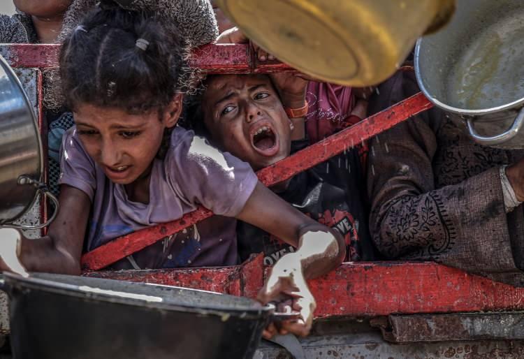 İsrail’in Gazze Şeridi’ne uyguladığı abluka ve devam eden saldırılar nedeniyle gıdaya erişimde zorluk yaşayan Filistinlilere, bir hayır kurumu tarafından yemek dağıtımı yapıldı. Gazze kentinde gerçekleşen dağıtım sırasında yoğunluk oluştu.