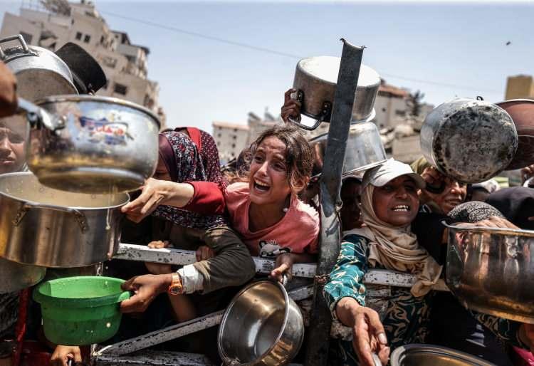 İsrail’in Gazze Şeridi’ne uyguladığı abluka ve devam eden saldırılar nedeniyle gıdaya erişimde zorluk yaşayan Filistinlilere, bir hayır kurumu tarafından yemek dağıtımı yapıldı. Gazze kentinde gerçekleşen dağıtım sırasında yoğunluk oluştu.