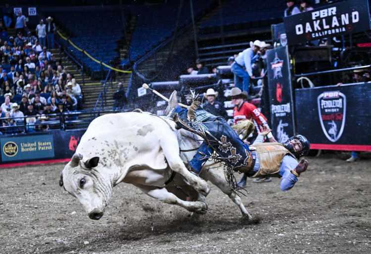 ABD'nin California eyaletinin Oakland kentinde 'Profesyonel Rodeocular' oluşumu tarafından rodeo etkinliği düzenlendi. Oakland Arena'da düzenlenen etkinliğe katılan rodeocular, yüzlerce kiloluk boğaların üzerinde gösteri yaptı. Etkinlikte profesyonel rodeo kovboyu Andy Guzman da yer aldı.