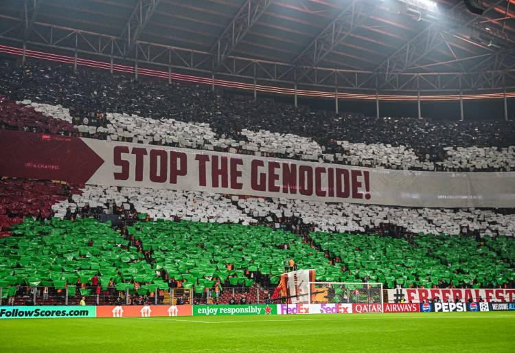 UEFA Şampiyonlar Ligi’nin üçüncü haftasında Galatasaray ile Bodo/Glimt takımları RAMS Park’ta karşılaştı. Galatasaray taraftarı karşılaşma öncesi koreografi yaparak Filistin'e destek verdi.