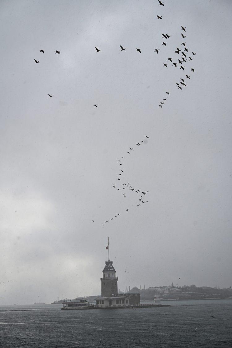 İstanbul'da gün boyunca aralıklarla devam eden kar yağışı, Üsküdar ve çevresinde etkili oldu.